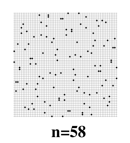 I.e., in these three symmetry classes I was looking for the maximal number of points which can be placed/marked on the grid of given size n but which is less(!) than 2n.