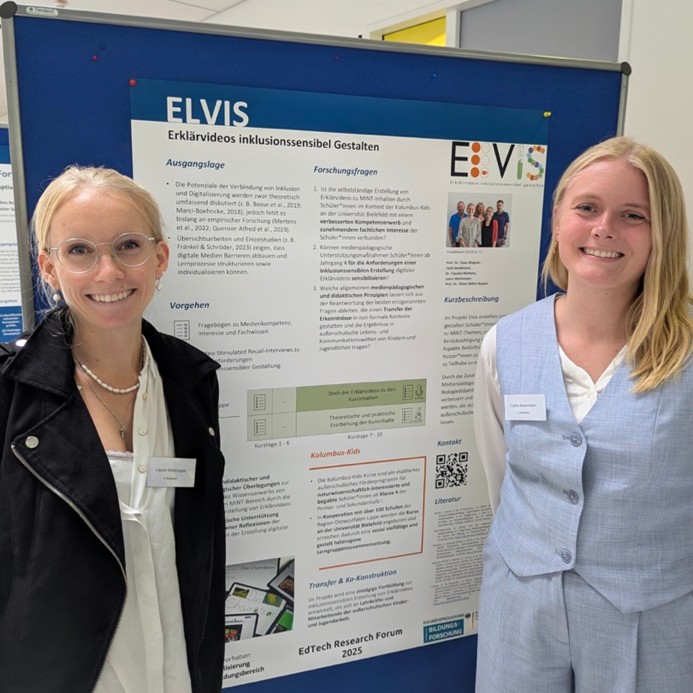 Das Projekt ELVIS war vom 18. bis 19. September beim EdTech Research Forum 2025 in Essen dabei!? Das Forum ist die Jahrestagung im Metavorhaben Digitalisierung im Bildungsbereich und bietet den Projekten der BMBF-Förderlinie Digi III Raum für Austausch, Vernetzung und Diskussionen zum Thema Kompetenzen in der digitalen Welt. Wir haben unser Projekt vorgestellt und viele spannende Impulse mitgenommen. Vor Ort mit dabei waren: Carla Beckmann, Laura Wehmeier und Prof. Dr. Oliver Böhm-Kasper.