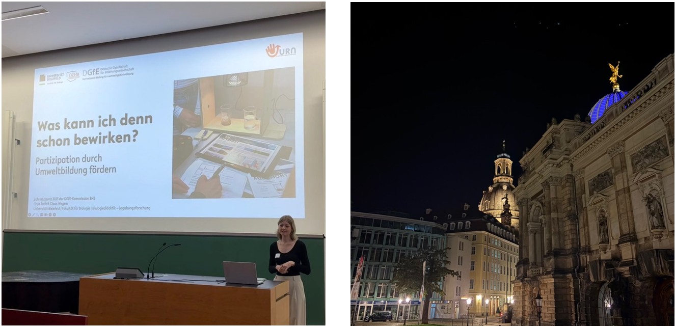 Unter anderem stellte Finja Rath erste Ergebnisse aus dem Forschungsprojekt UTurn vor und zeigte dabei auf, wie Partizipation von Schüler:innen in ökologischen Nachhaltigkeitsdiskursen durch methodisch differenzierte Umweltbildung ermöglicht werden kann.