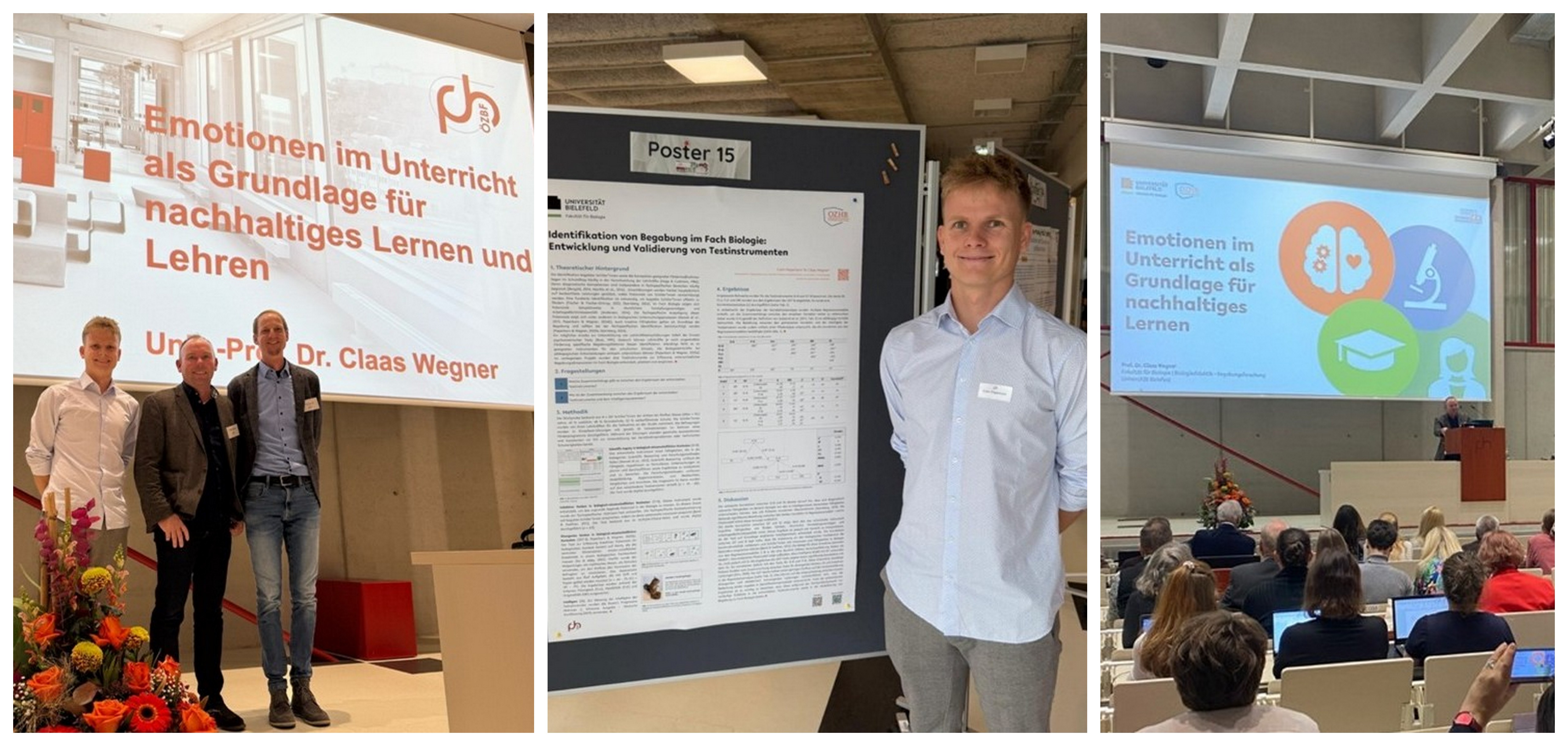 Prof. Dr. Claas Wegner war als Keynote-Vortragender eingeladen und sprach zum Thema: „Emotionen im Unterricht als Grundlage für nachhaltiges Lernen und Lehren“. Colin Peperkorn präsentierte in einer Poster-Session seine Forschungsergebnisse zur „Begabungsidentifikation im Fach Biologie“.