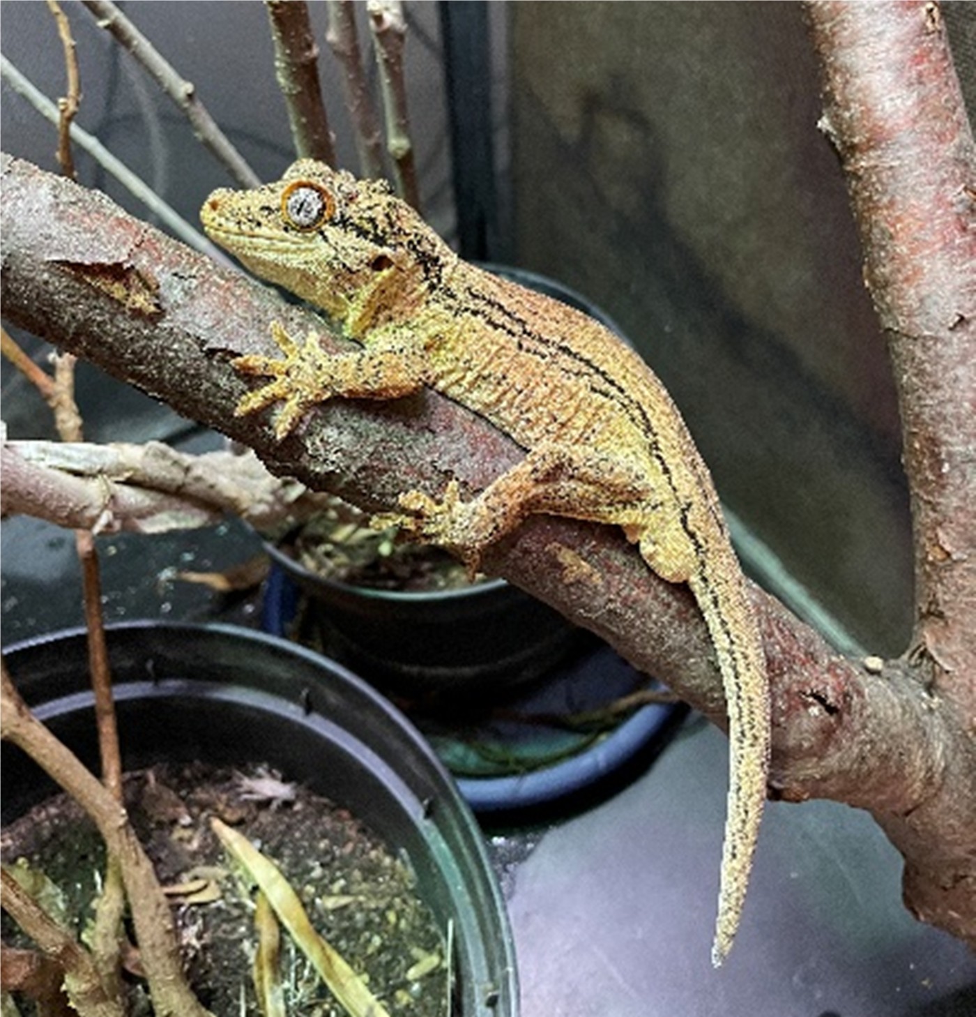 Familie der Doppelfingergeckos Doppelfingergeckos (Diplodactylidae) sind eine in Australien, Neuseeland und Neukaledonien lebende Familie der Geckoartigen. Bei den bei uns vertretenen Arten handelt es sich um die Neukaledonischen Flechtengeckos (Mniarogekko chahoua) und die Höckerkopfgeckos (Rhacodactylus auriculatus), welche über Haftlamellen verfügen. Diese ermöglichen ein sicheres Klettern, selbst an glatten Oberflächen. Sie besitzen keine Augenlieder und müssen ihre Augen daher regelmäßig mit der Zunge reinigen und befeuchten. Außerdem können sie, wie viele andere Geckos, ihren Schwanz bei Gefahr abwerfen. Dieser wächst jedoch nicht wieder nach. |