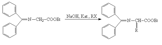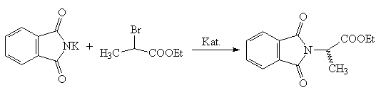 Als besonders geeignete Katalysatoren haben sich das Benzylchininiumchlorid und seine Derivate herausgestellt. Meine Aufgabe ist es, neue chirale Ammoniumsalze mit einer zum Chinin ähnlichen Struktur zu synthetisieren und ein geeigneten Reaktionen auf ihre Wirksamkeit hin zu untersuchen. Für die Katalysatorsynthese werden chirale Edukte wie z.B. Prolin, Glutaminsäure, Hydroxyprolin und Lupinin eingesetzt. Das Lupinin wird aus den Samen der gelben Lupine isoliert. Wie das gemacht wird, können Sie nachlesen.